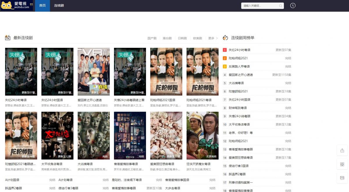 TVB最新電視劇,wotvb愛電視是一直專注於香港TVB最新電視劇的電視劇網站,我們提供最快TVB最新電視劇,為廣大TVB最新電視劇迷朋友提供最快最新最優質的服務!使徒行者3粵語線上看,失憶24小時粵語線上看,TVB最新電視劇,陀槍師姐2021粵語線上看