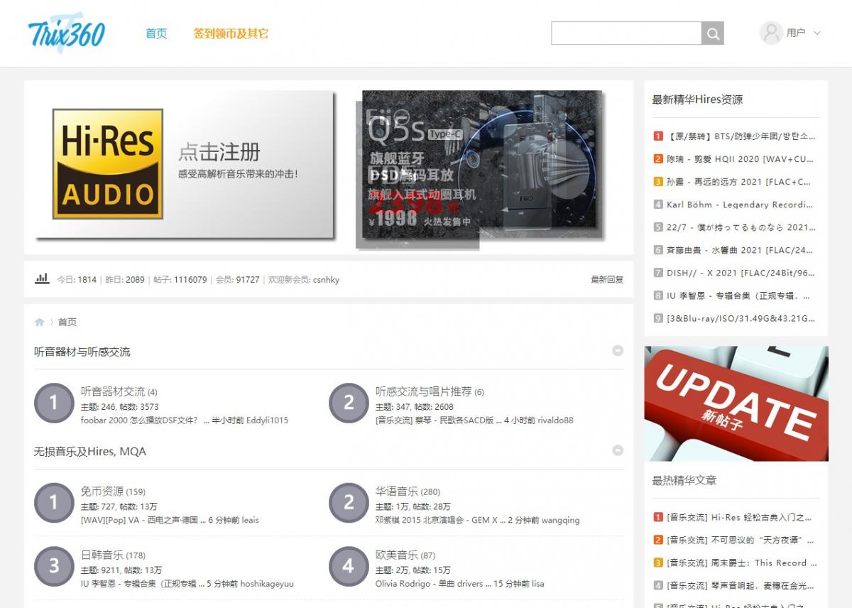 易音音乐论坛,发布原创HIFI设备文章,下载发烧级音乐资源,包括SACD音乐,DSD64,DSD128,DSD256,24bit 96khz,24bit 192khz,32bit 192khz,DXD 352.8KHZ,LP黑胶等高解析度音乐资源下载。