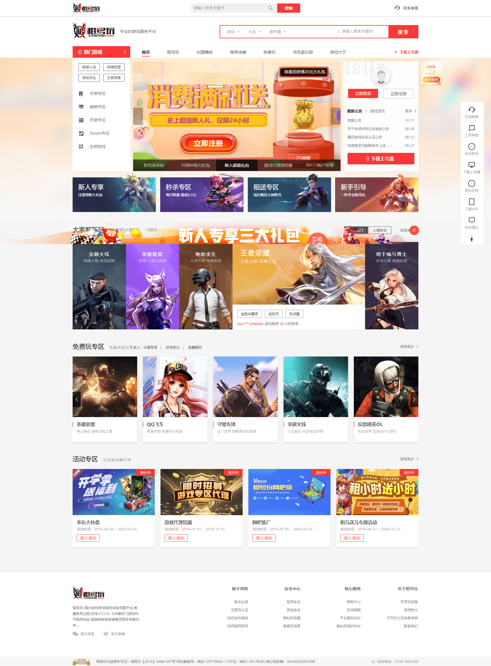 租号玩是国内专业的游戏帐号出租、租用、买卖帐号交易平台,玩家无需帐号密码即可畅玩LOL(英雄联盟),CF(穿越火线)等游戏的极品号,同时租号软件还有防外挂等安全防护功能,能从根源上保证游戏帐号安全