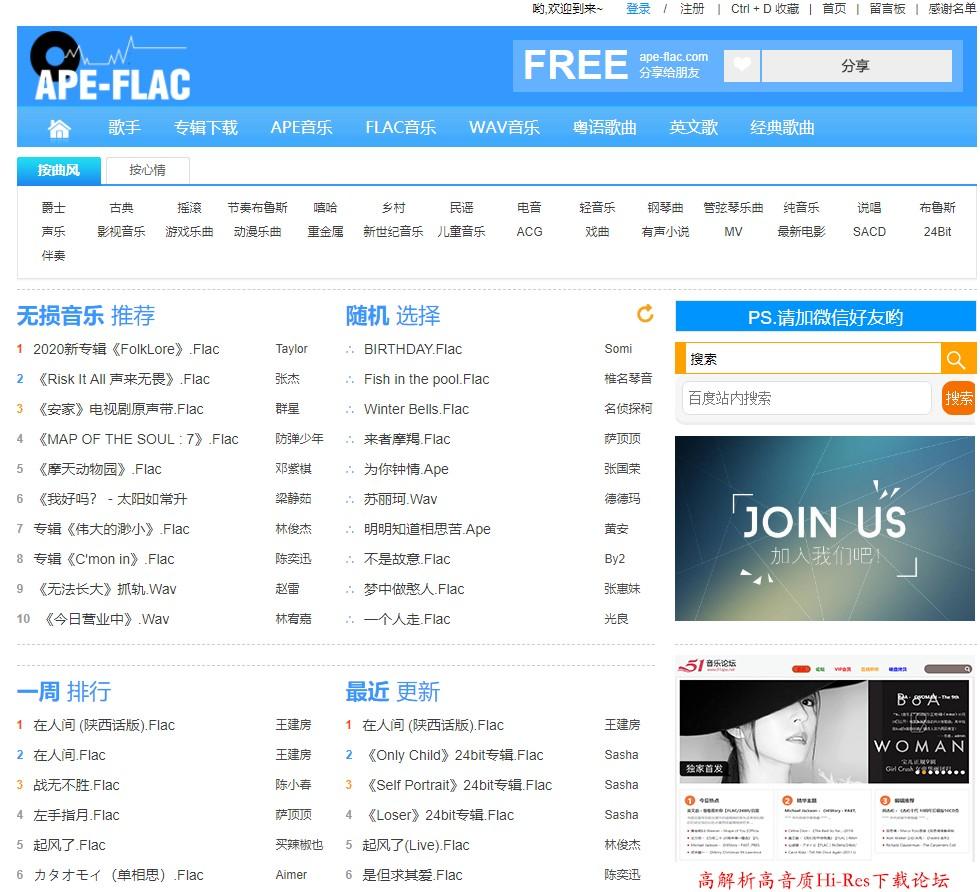 搜无损网Ape-Flac.Com是一个免费提供无损音乐下载的网站,专注于Ape音乐、Flac音乐以及Wav等各类高品质无损音乐的免费下载,致力于做国内最好的无损音乐下载网站