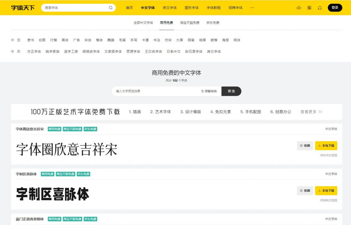 字体天下 - 商用免费的中文字体的免费下载和在线预览