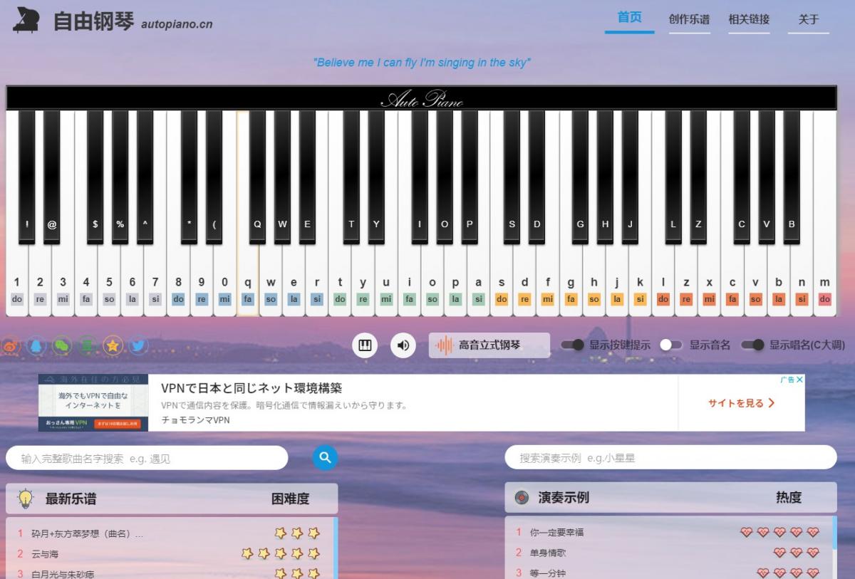 自由钢琴(AutoPiano)是利用HTML5技术开发的在线钢琴应用,致力于为钢琴爱好者、音乐爱好者提供一个优雅、简洁的平台,在学习工作之余可以在线弹钢琴,享受音乐、生活的美好。自由钢琴支持自动演奏和手动演奏,简单易学,快来试试吧