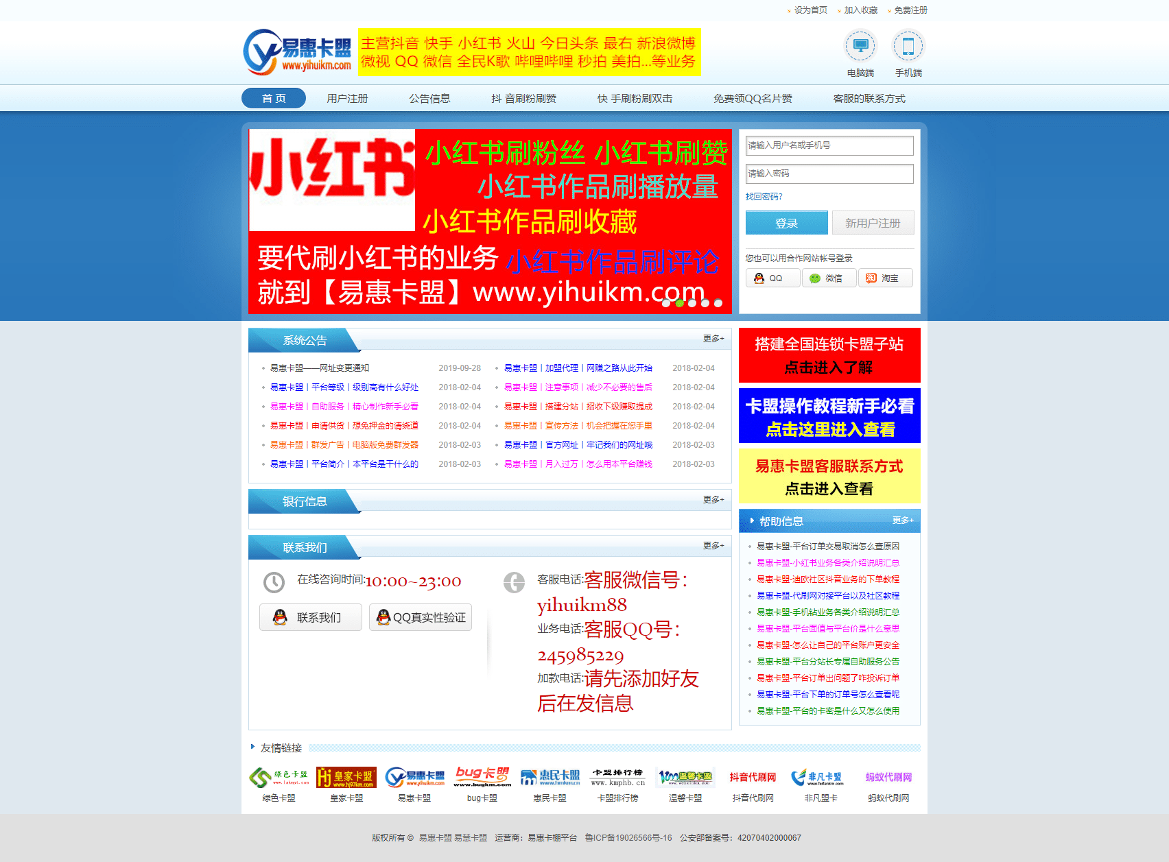 颜夕卡盟平台是全国最大,卡盟排行榜第一的卡盟平台,主打QQ钻业务,空间业务以及各类空间业务社区,进货价格便宜,货源稳定,卡盟商品众多,卡盟客服QQ:800038340