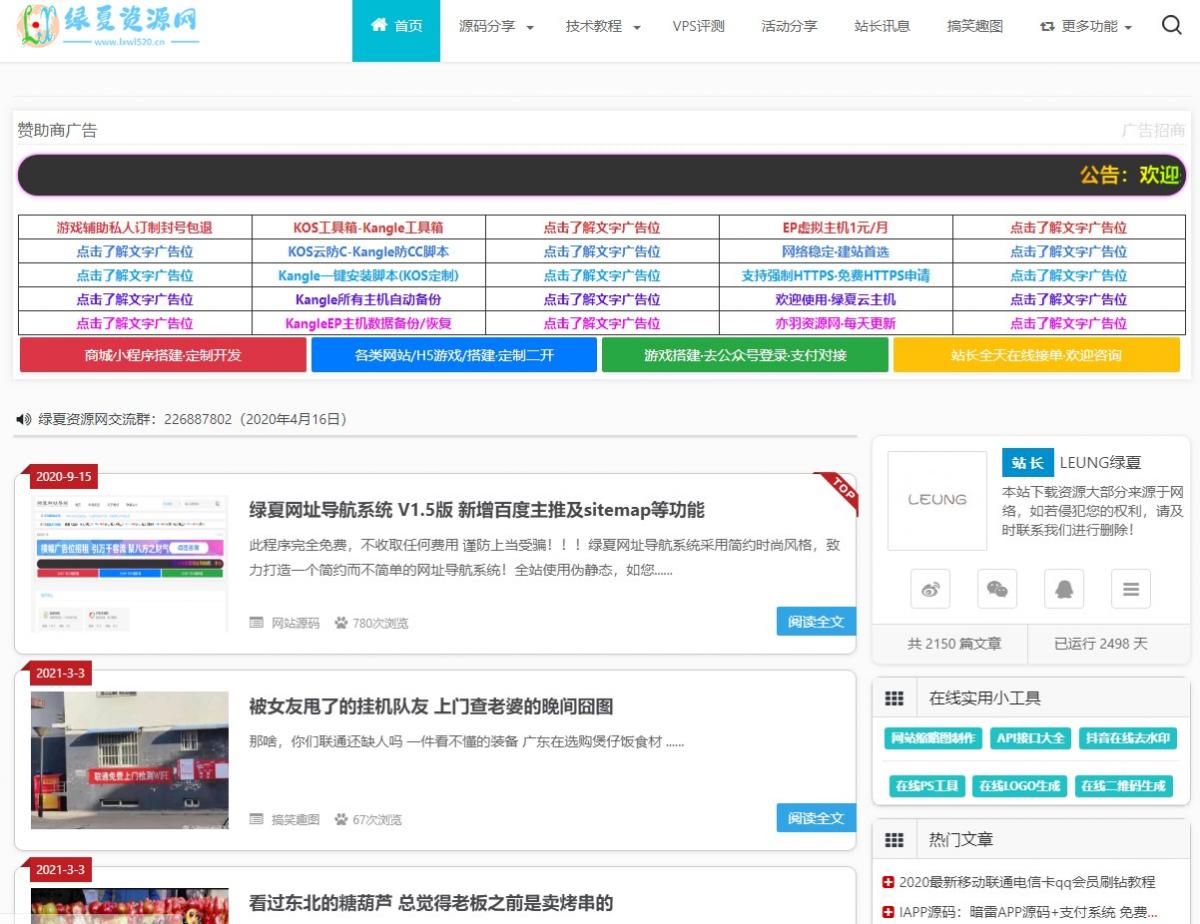 绿夏资本网(绿夏网)次要是发布手艺教程、游戏源码、网站源码、易语言、活动线报、VPS办事器测评等免费分享和供给下载的一个进修和参考网,我们以分享、传递等全方位为收集新人缔造一个优良的进修平台!