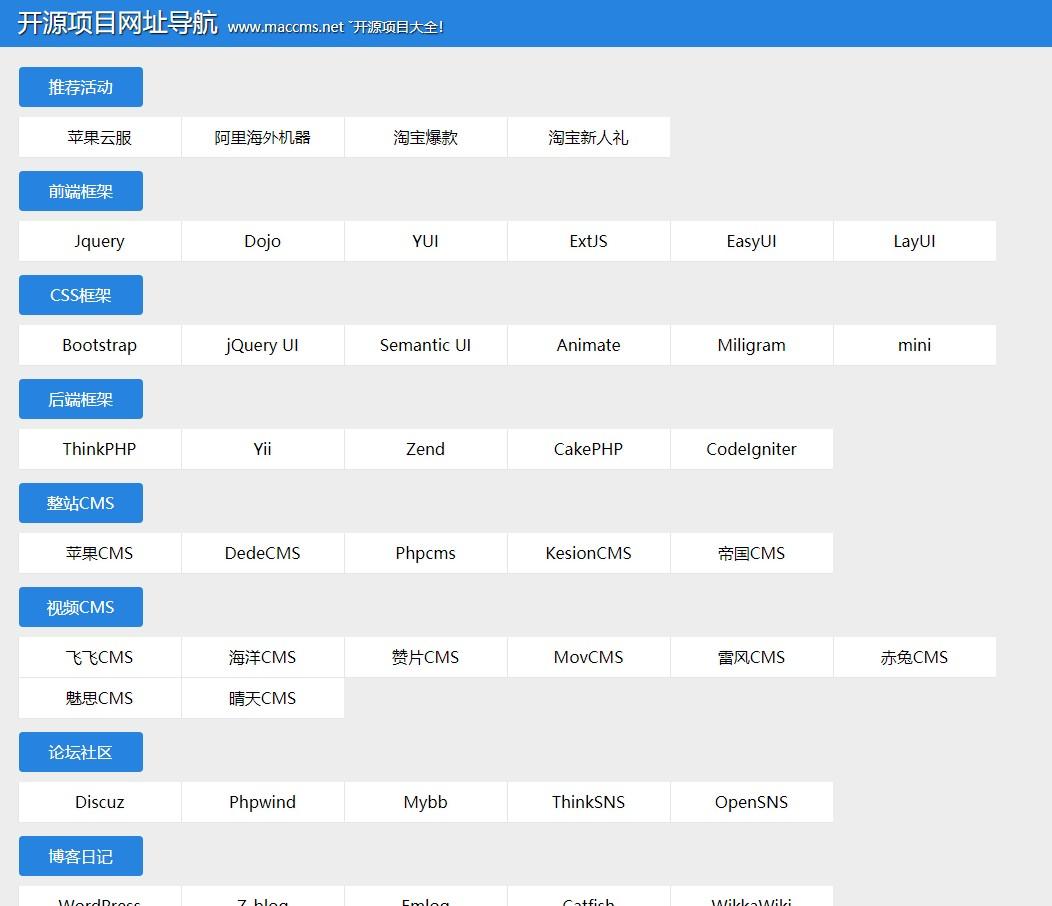 开源项目导航,源码网址导航,CMS导航,PHP法式导航,开源中国,源码之家