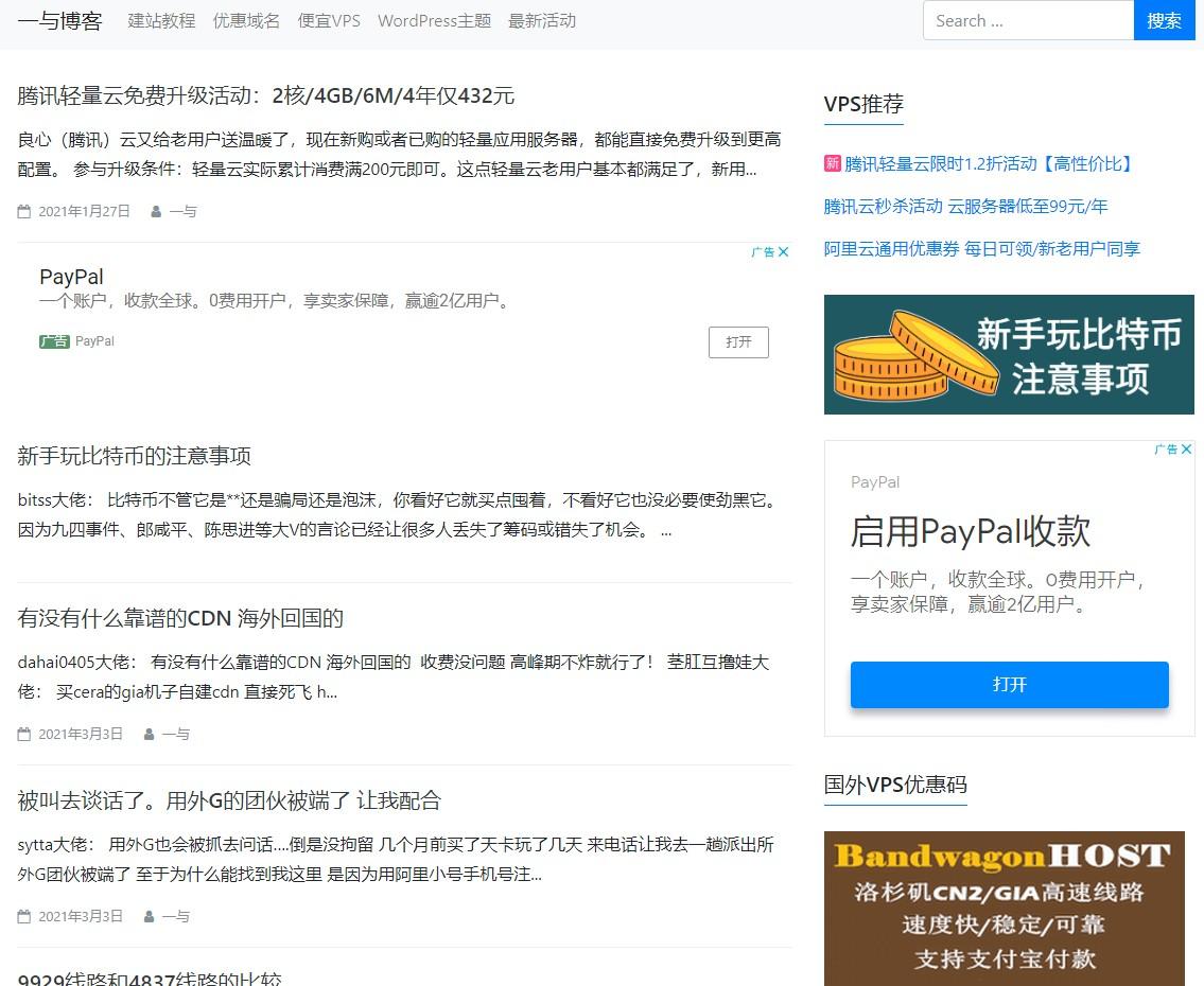 一与博客 - 免费主机,特价VPS,优惠域名,WordPress主题等站长资本分享