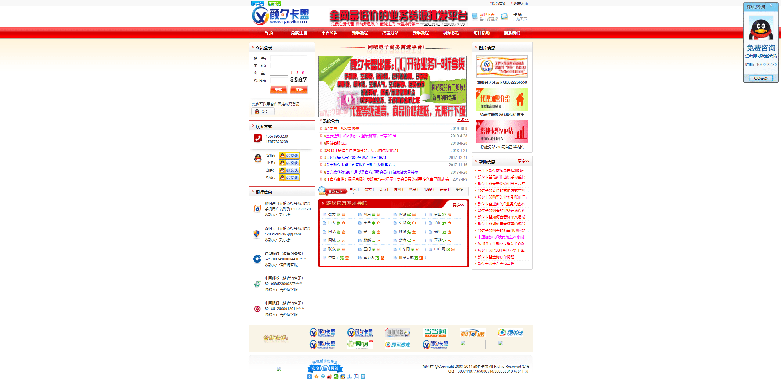 颜夕卡盟平台是全国最大,卡盟排行榜第一的卡盟平台,主打QQ钻业务,空间业务以及各类空间业务社区,进货价格便宜,货源稳定,卡盟商品众多,卡盟客服QQ:800038340