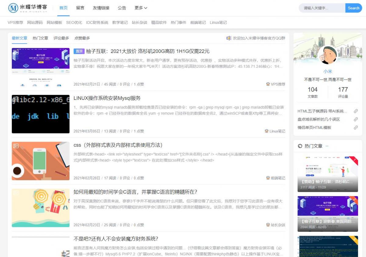 米耀华博客免费分享各种技术综合类教程,各类网站程序源码,模板插件,专为新手站长打造最好的技术博客,来这里和小米一起进步学习吧!