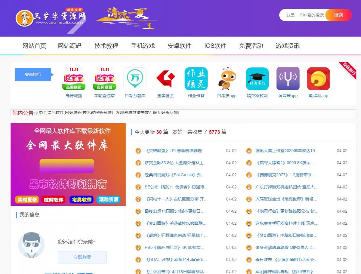 三岁半资源网(sansuib.com)每天更新网站源码与网络技术教程|设计素材|网站源码|资源教程|精品软件|新闻资讯|干货好文|破解软件|PS素材|小程序源码|网赚教程