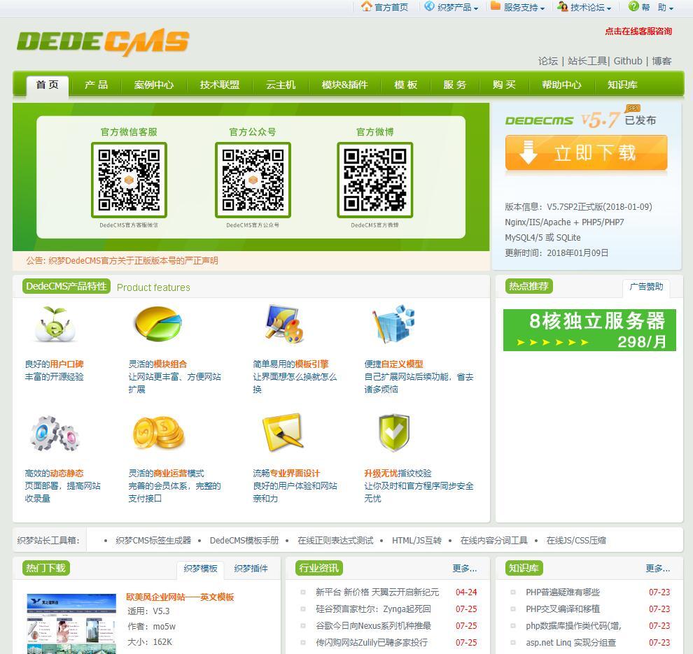 织梦CMS是集简单、健壮、灵活、开源几大特点的开源内容管理系统,是国内开源CMS的领先品牌,目前程序安装量已达七十万,超过六成的站点正在使用织梦CMS或基于织梦CMS核心开发.