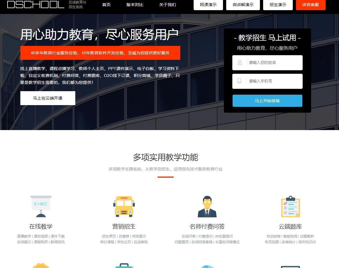 D网校系统,是华中地区优秀的在线教育、培训系统开发商,是众多大型教育培训企业信赖的软件供应商。我们为广大企事业单位提供,在线教育、在线答题、企业内训、远程教育软件系统。