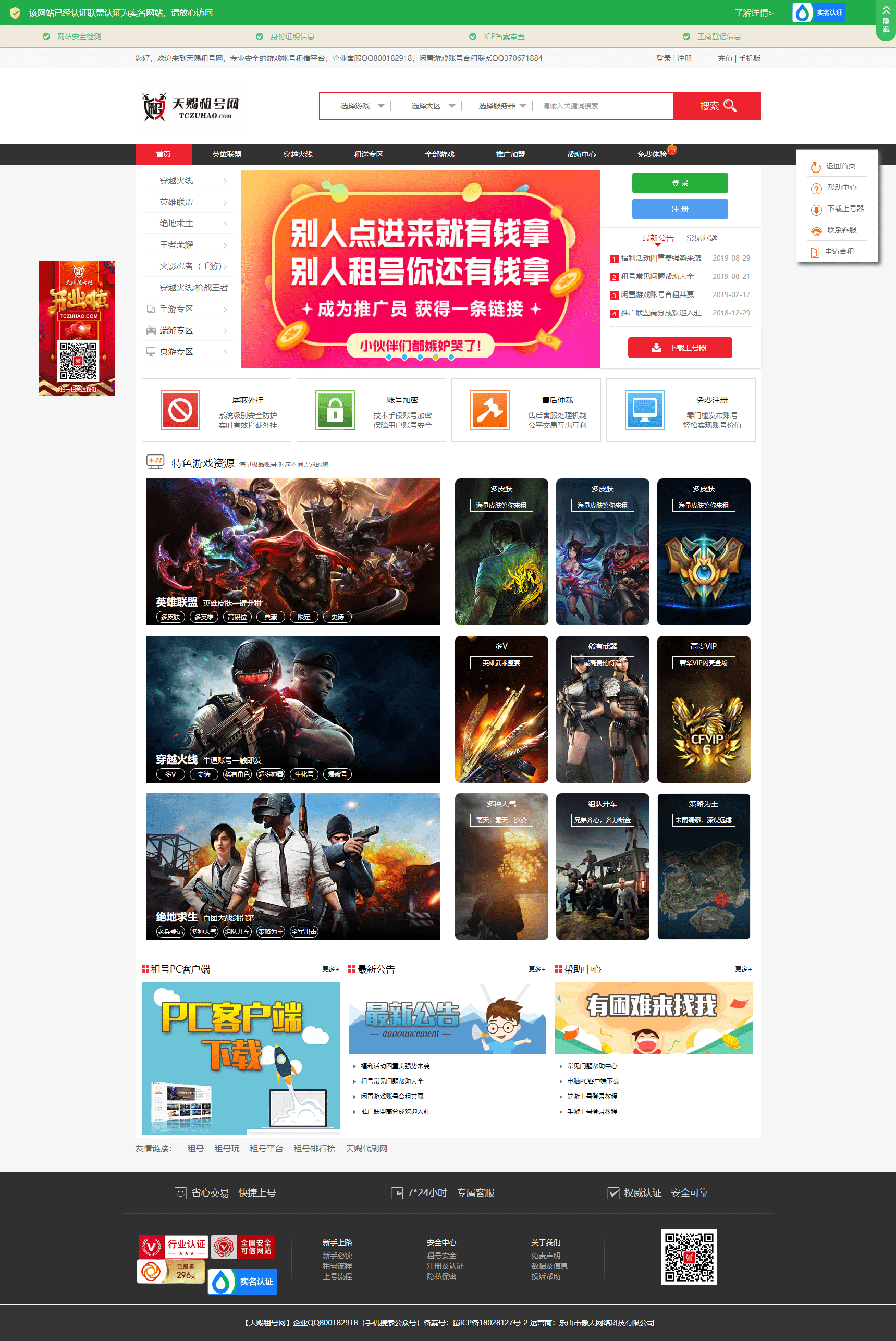 天赐租号网 - 租号平台_专业安全的游戏帐号租借平台