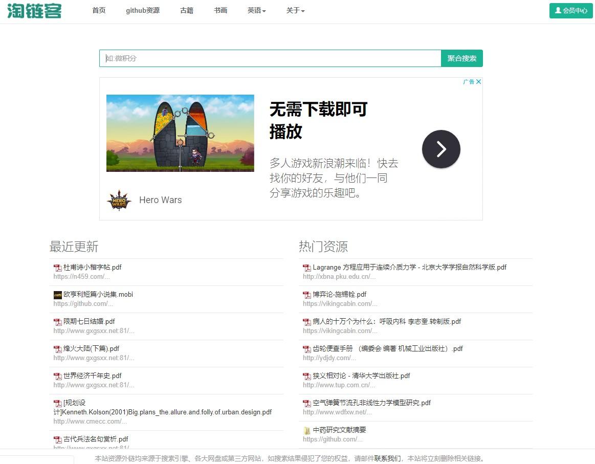 淘链客 - 外链资源聚合搜索引擎