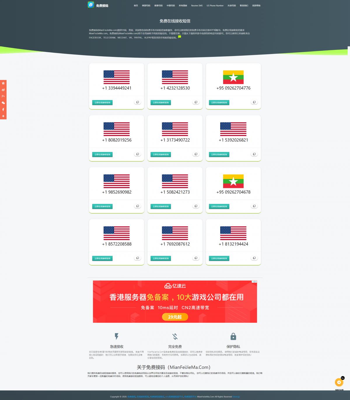 免费接码 - 在线短信接收,在线短信平台,免费接收短信