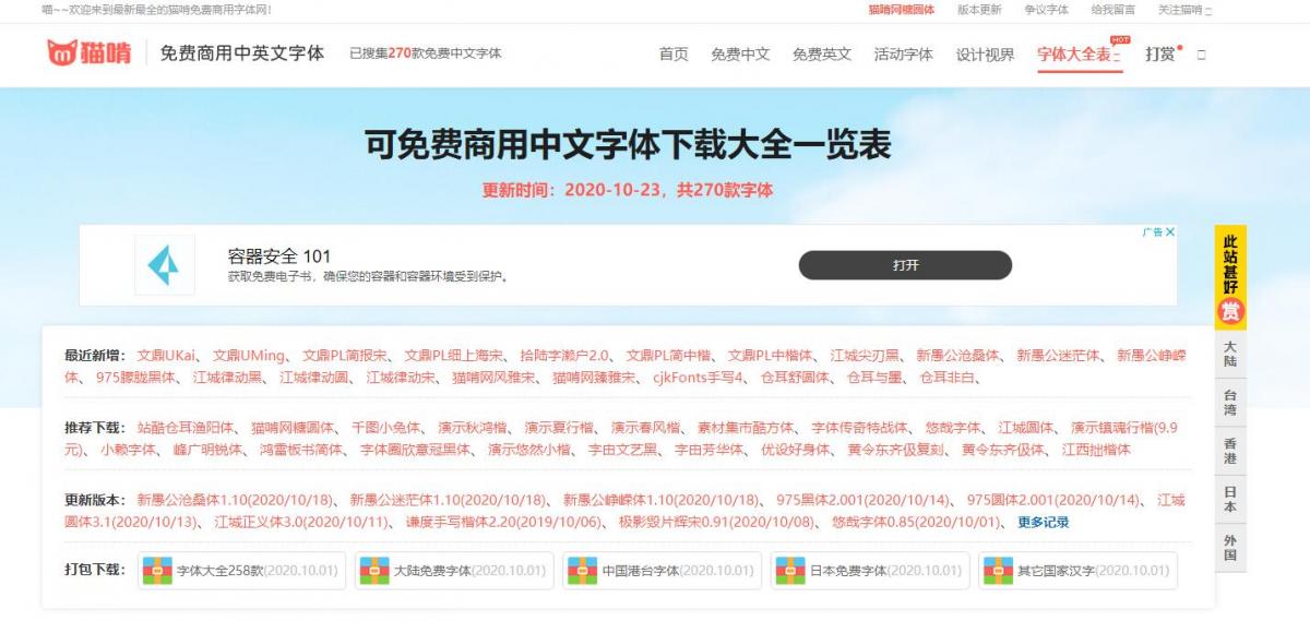 猫啃网致力于在网上搜罗各式各样的可以商用免费字体下载。免费的中文字体,包括了简体和繁体。而说到繁体,由于日文的JIS标准中也包含了大量的繁体字型,故日文字体也在本站的搜罗范围之中。所以本站把中文字体分成了中国大陆,中国台湾,中国香港及日本等字体派系。