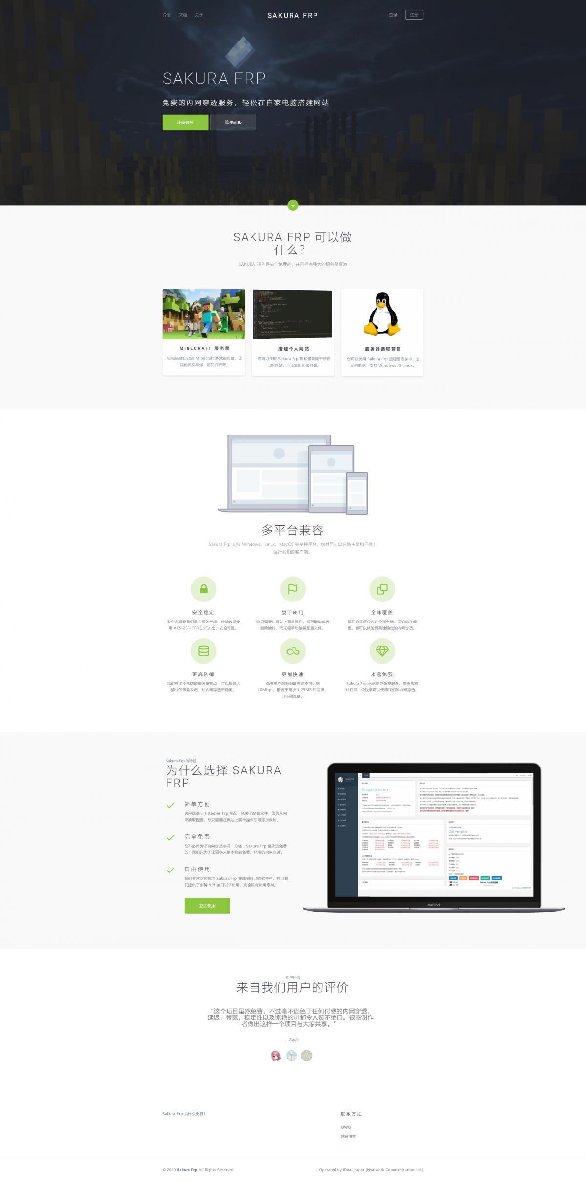 Sakura Frp - 免费内网穿透_免费端口映射_高速_高防节点_不限流量_Minecraft我的世界_微信开发调试_群辉NAS_无需公网_免备案