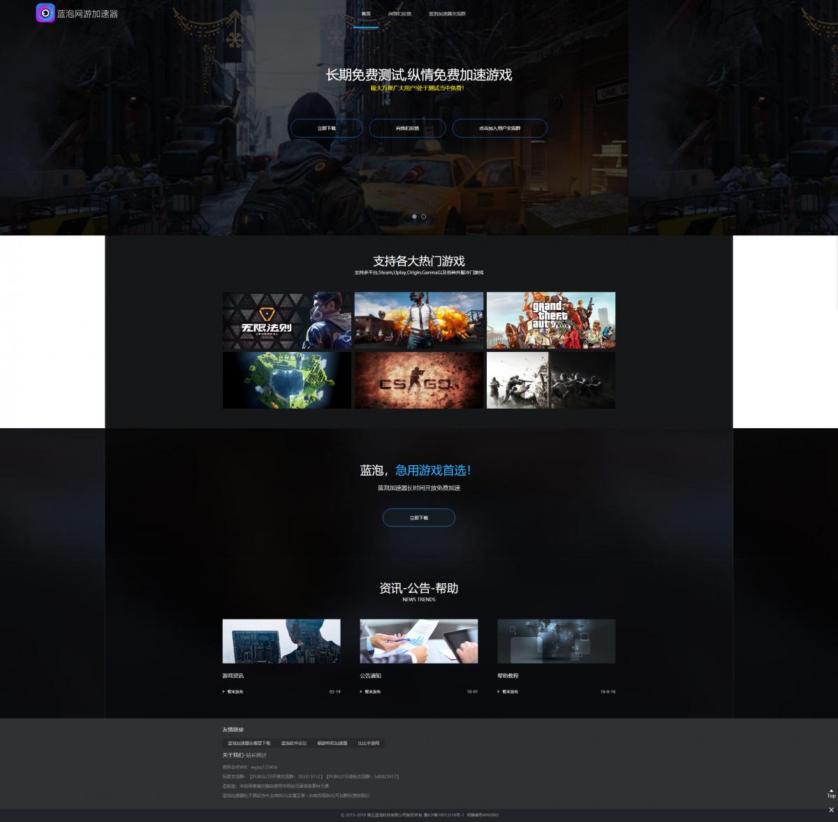 蓝泡游戏加速器是一款长期免费的游戏加速器,用户们可以自定义更改到期时间,非常的好用,一键加速畅玩绝地求生吃鸡加速器,pubglite加速器,GTA5加速器,steam加速器等其他热门外服游戏,蓝泡加速器目前属于长期测试中,免费开放香港节点给网友应急使用!