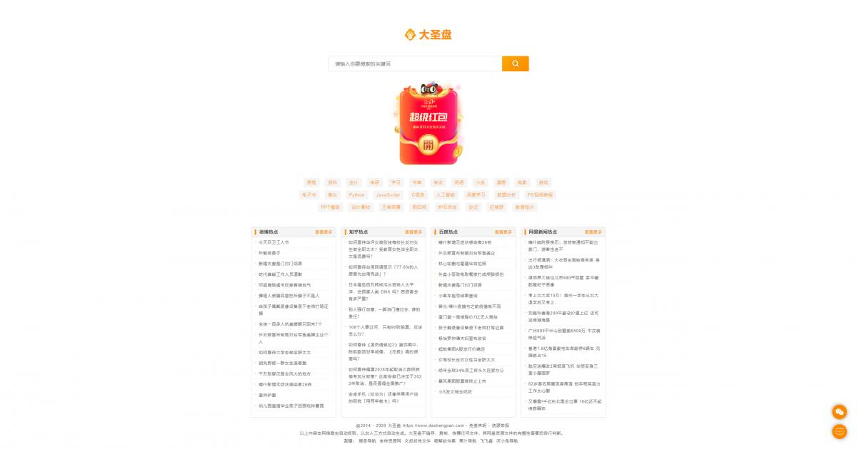 大圣盘,百度网盘搜索神器,可快速搜索百度网盘资源中的有效连接,自动识别无效的百度资源,每天更新海量资源。