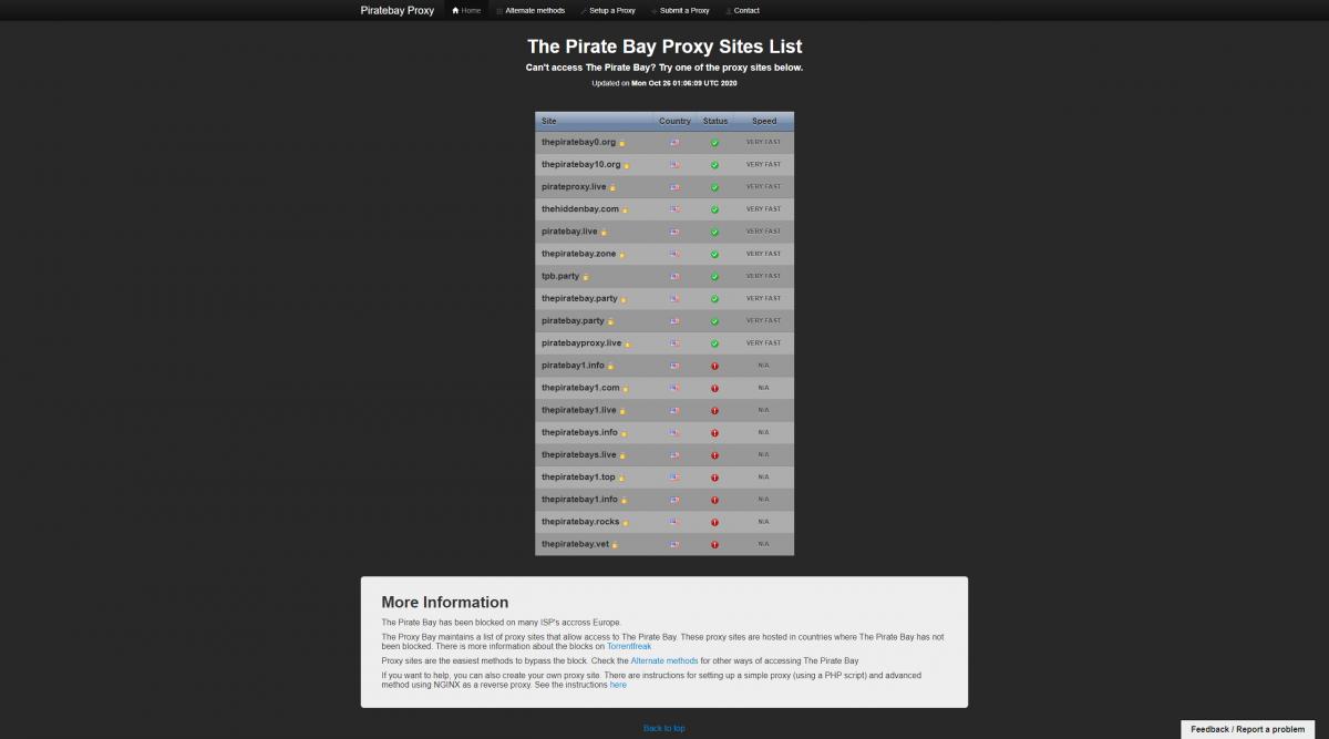 Piratebay Proxy - A List of Pirate Bay Proxy sites and mirrors